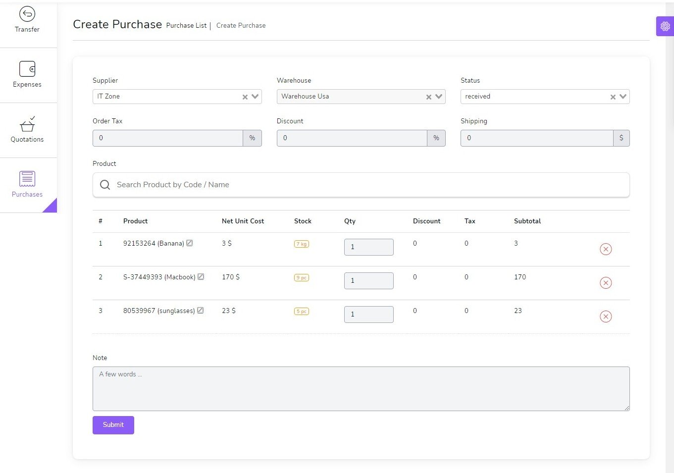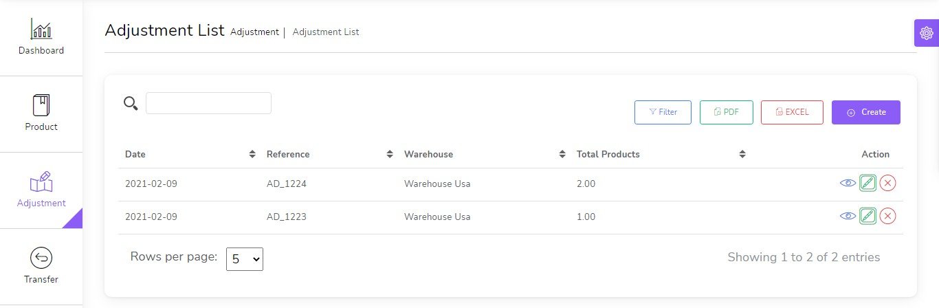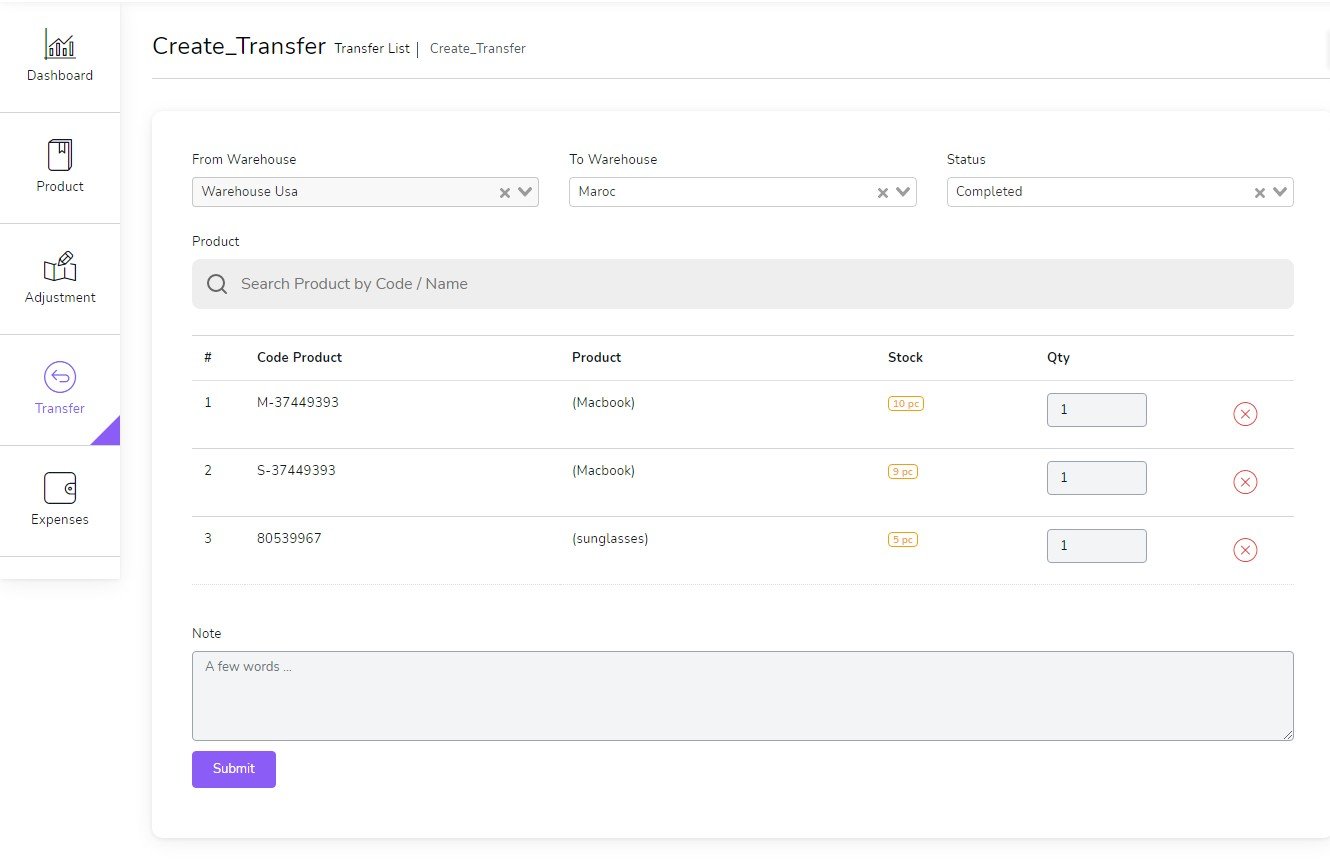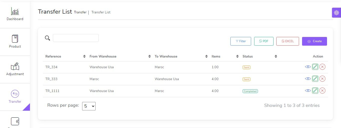 • Filter Transfer by Reference , To warehouse , From Warehouse , Status