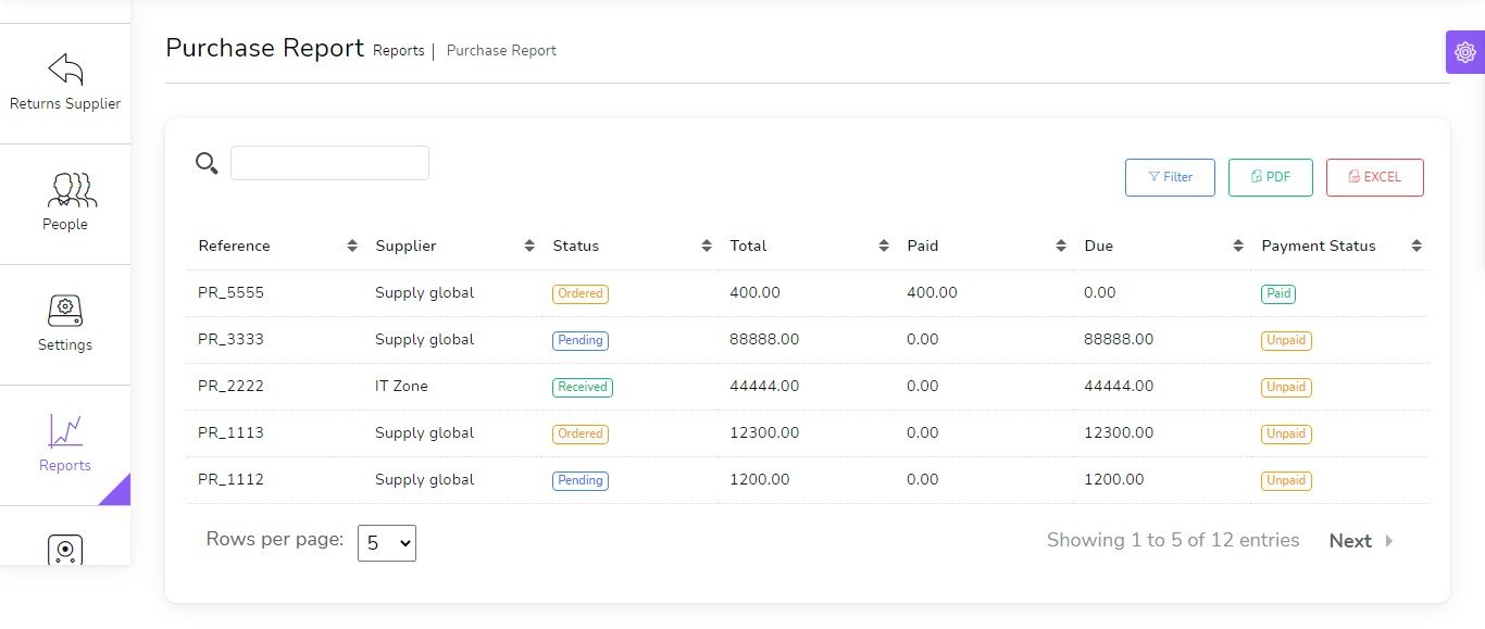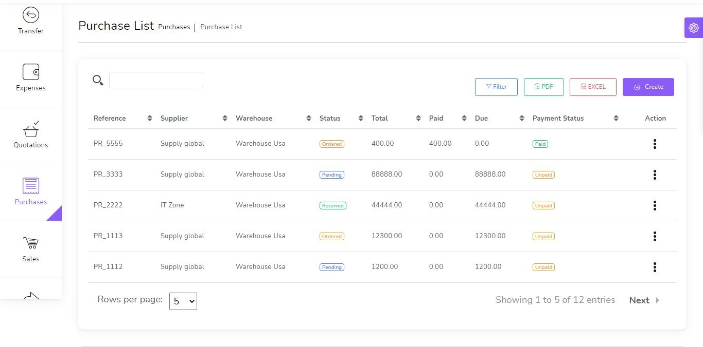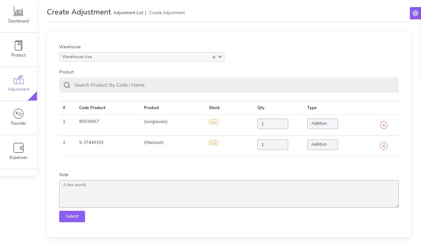 • Filter Transfer by Reference , To warehouse , From Warehouse , Status